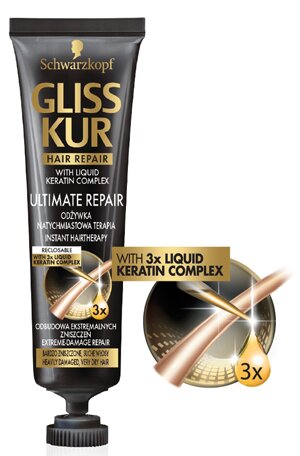 Ultimate Repair matu kopšanas līnija - matu atjaunošanas inovācija: īpaši efektīvi atjaunojošā formula ar vielām, kas ir identiskas matu sastāvā esošajām un 3 reizes koncentrētāku šķidrā keratīna kompleksu* atjauno pat ārkārtīgi bojātus matus no iekšienes, kā arī vienlaikus atjauno to virsmu. Līdz pat 95% pamanāma bojājumu samazināšanās, izturīgāki mati un mirdzums.